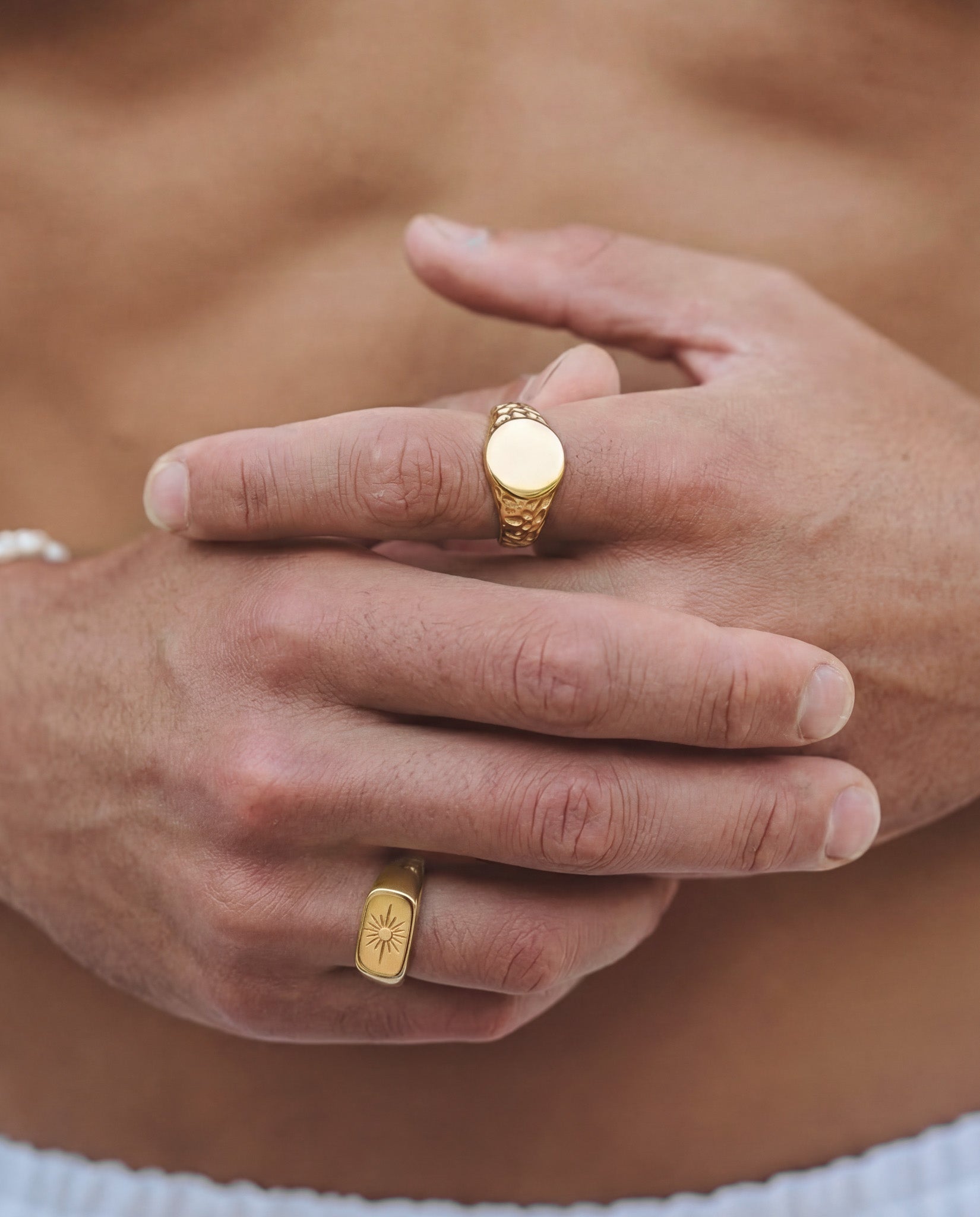We use premium stainless steel plated with 18K gold through a process called Physical Vapor Deposition (PVD). This advanced technique creates a coating up to ten times thicker than regular gold plating.