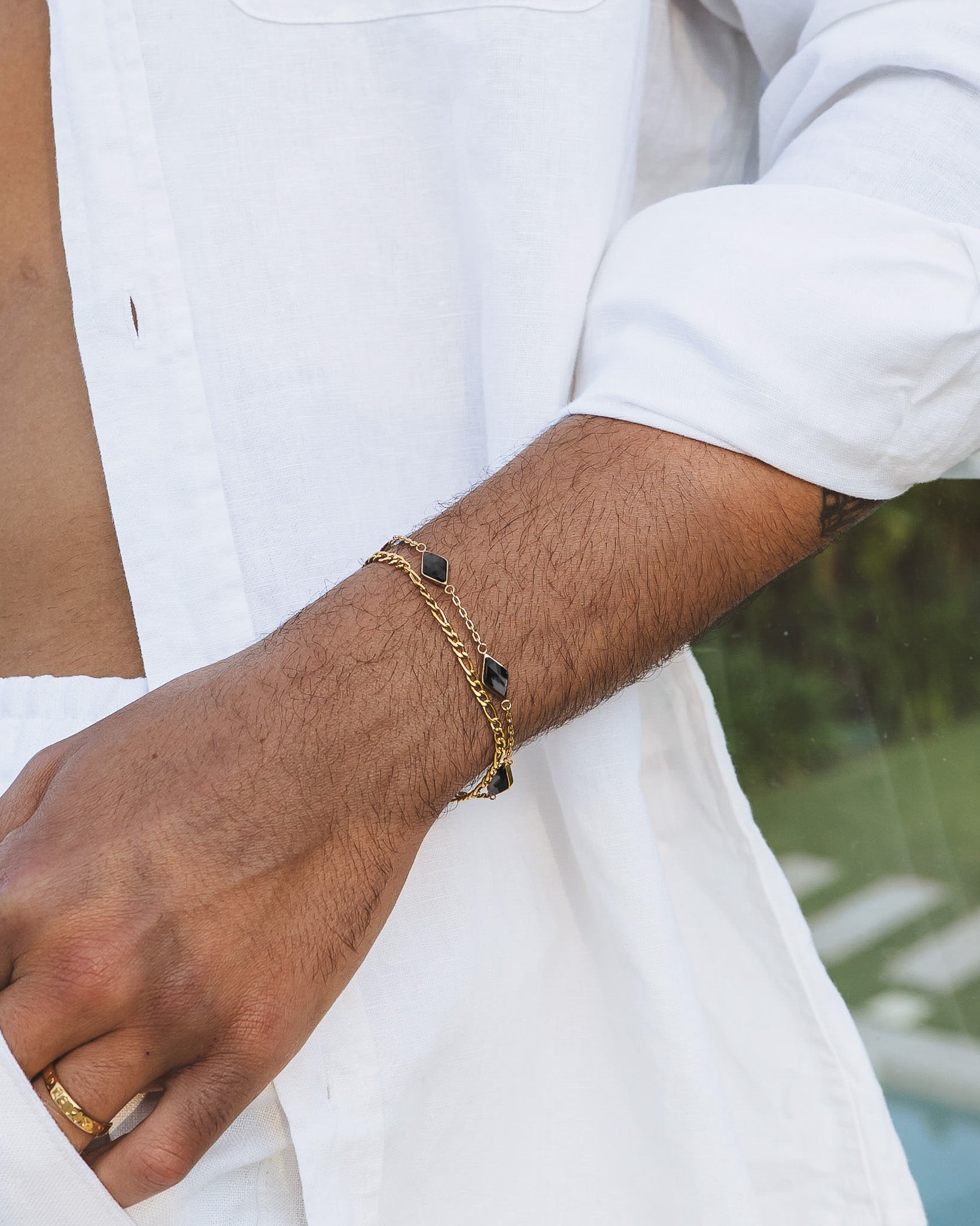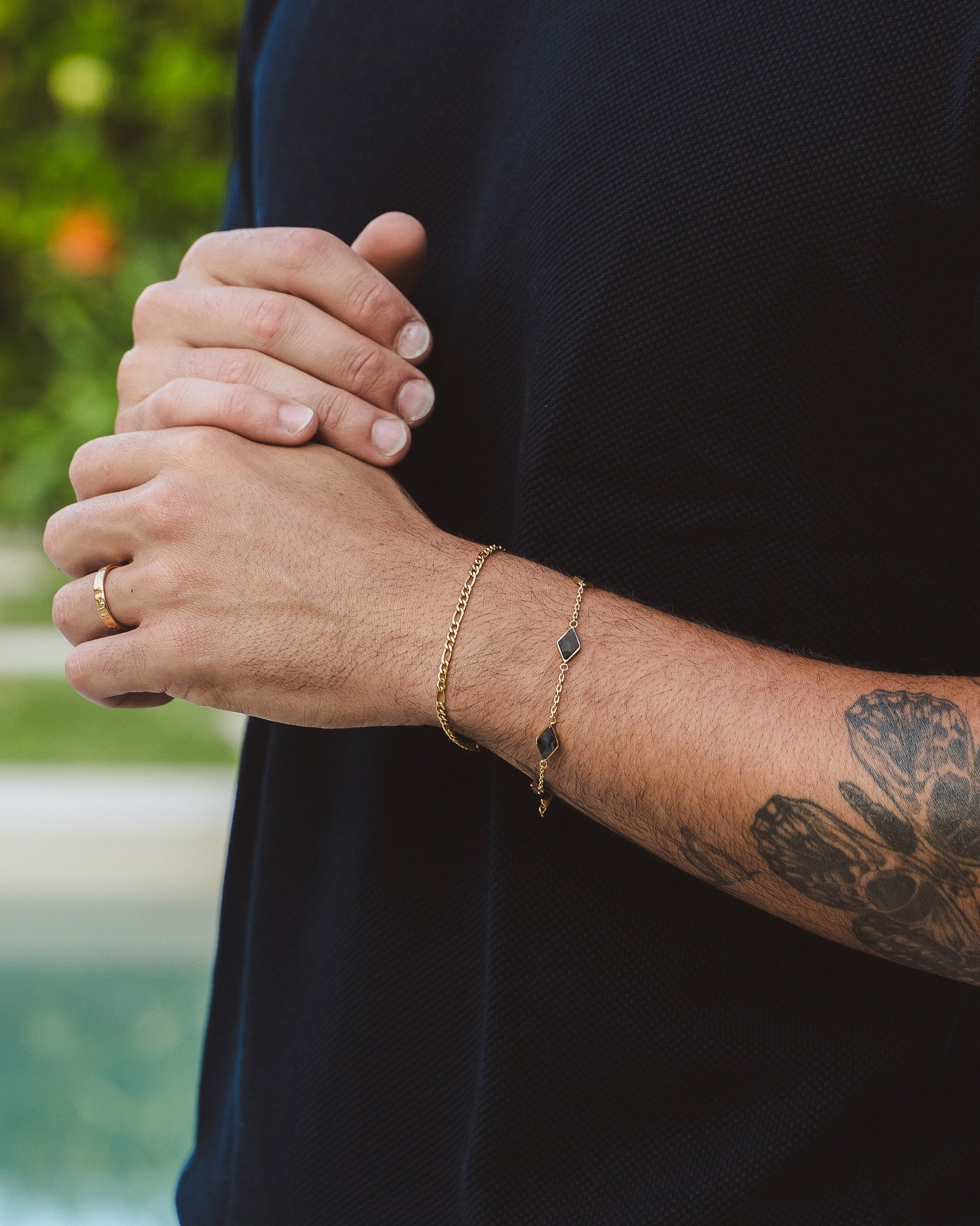 We use premium stainless steel plated with 18K gold through a process called Physical Vapor Deposition (PVD). This advanced technique creates a coating up to ten times thicker than regular gold plating.