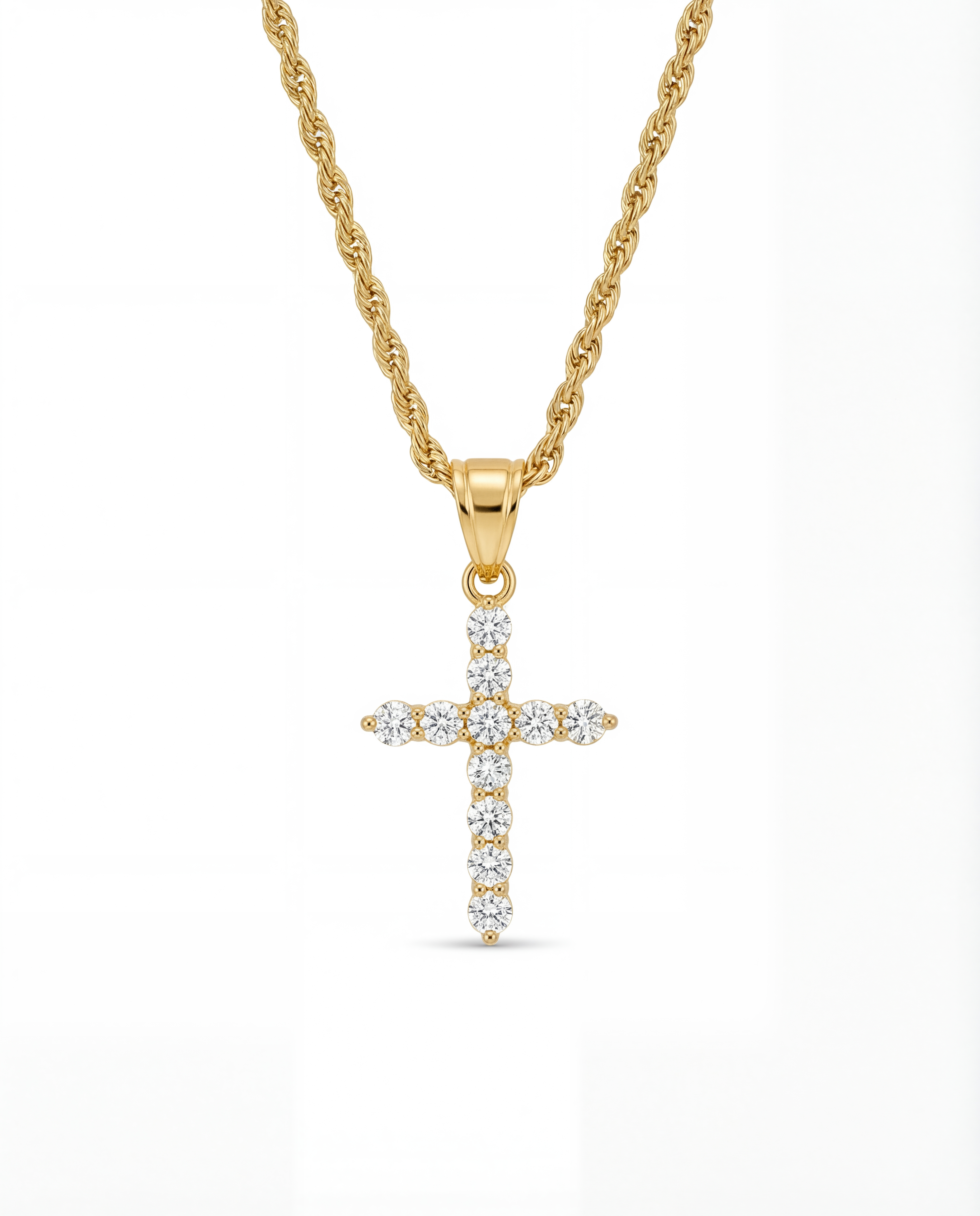 18K gold plating with zircon crystals cross. Timeless brilliance.