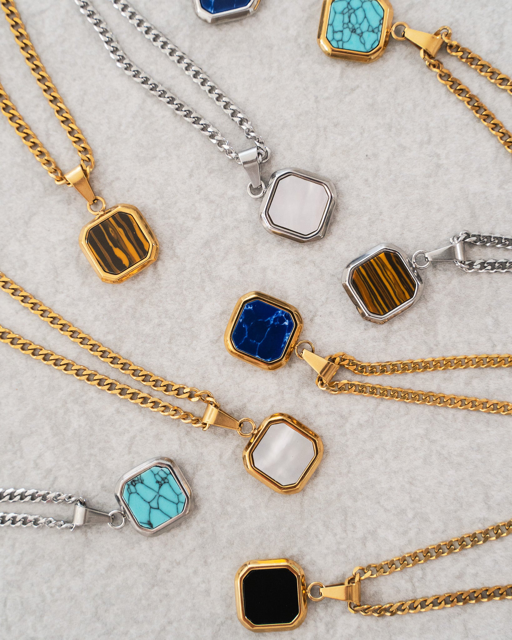 Our products are crafted from premium stainless steel, a robust and durable material that resists tarnishing, fading, and discoloration over time. It's also hypoallergenic, ensuring it won't irritate your skin or turn it green.